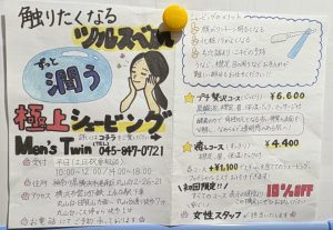 10月から、メンズツインにレディースシェービングのメニューが追加されました!