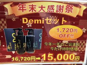 自分のおすすめは、当店のスパで使っているDEMI2本ずつセットです♪